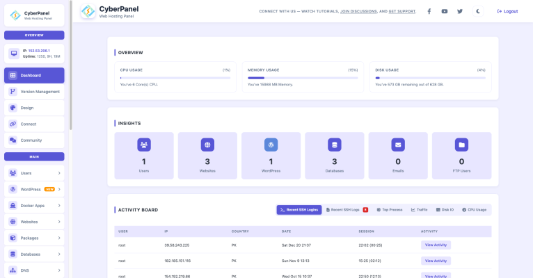 It’s common to have several websites, email, databases, and other applications running side by side on a single virtual server. Add routine tasks like issuing SSL certificates and creating backups, and managing everything through the command line can quickly become time-consuming. Control panels like CyberPanel are designed to solve this problem by simplifying administration and giving you centralized control over the entire server.