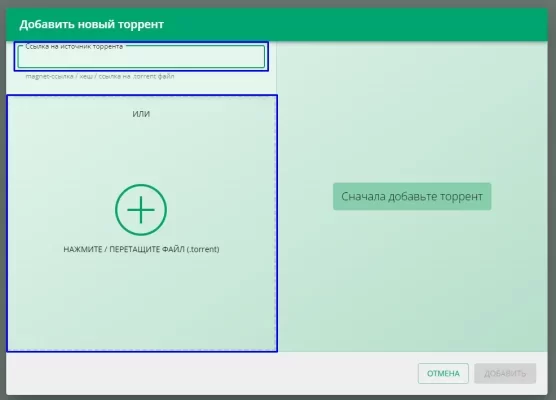 Next, transfer the torrent file or paste the magnet-link text (torrent file content).