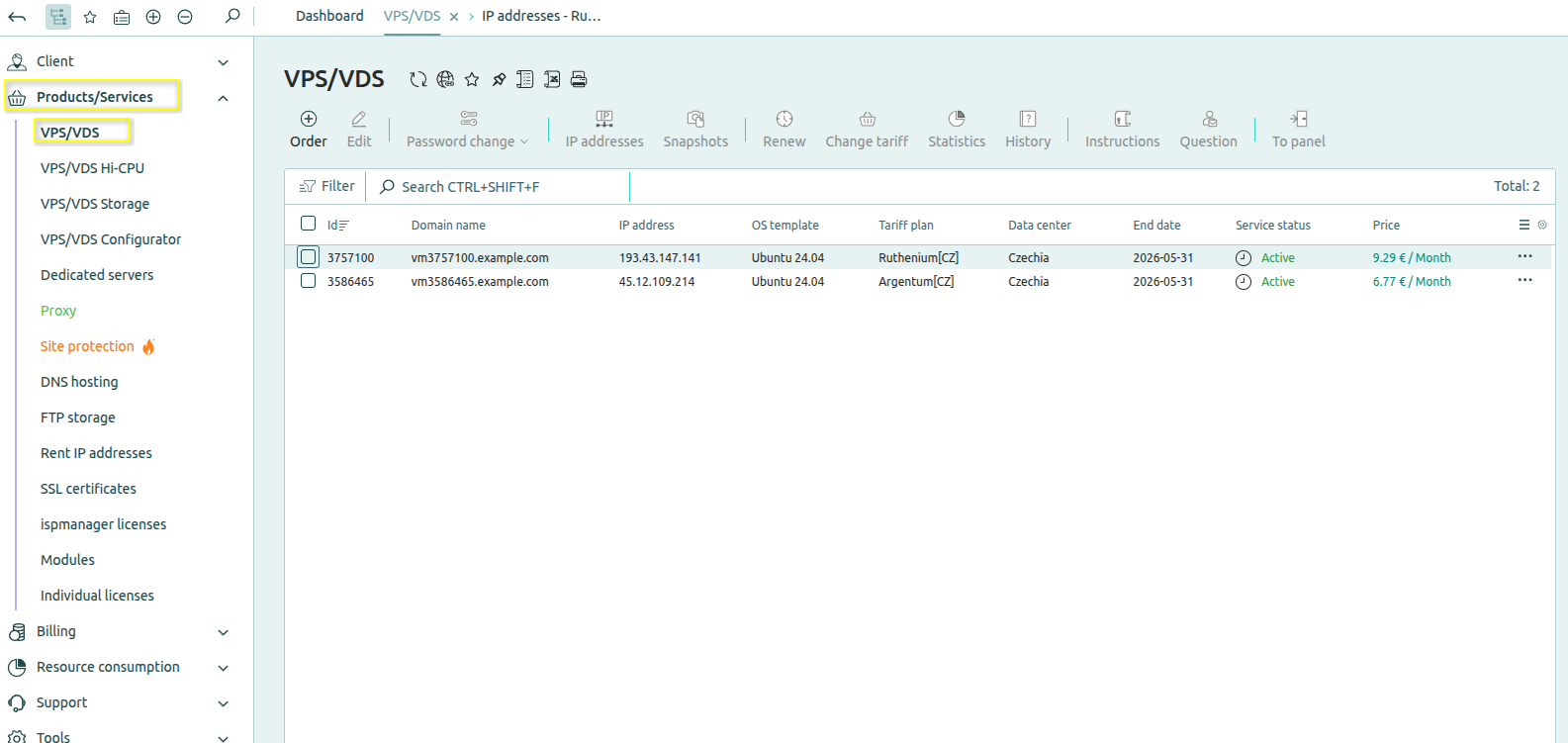 Important: The option to order additional IP addresses is available for VPS plans starting from Argentum.