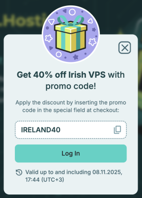 Discount: 40% off Irish VPS