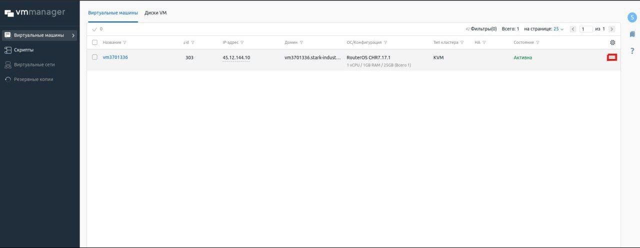 Первоначальная настройка выполнена. Теперь вы можете зайти через winbox и настроить RouterOS CHR под ваши задачи:
